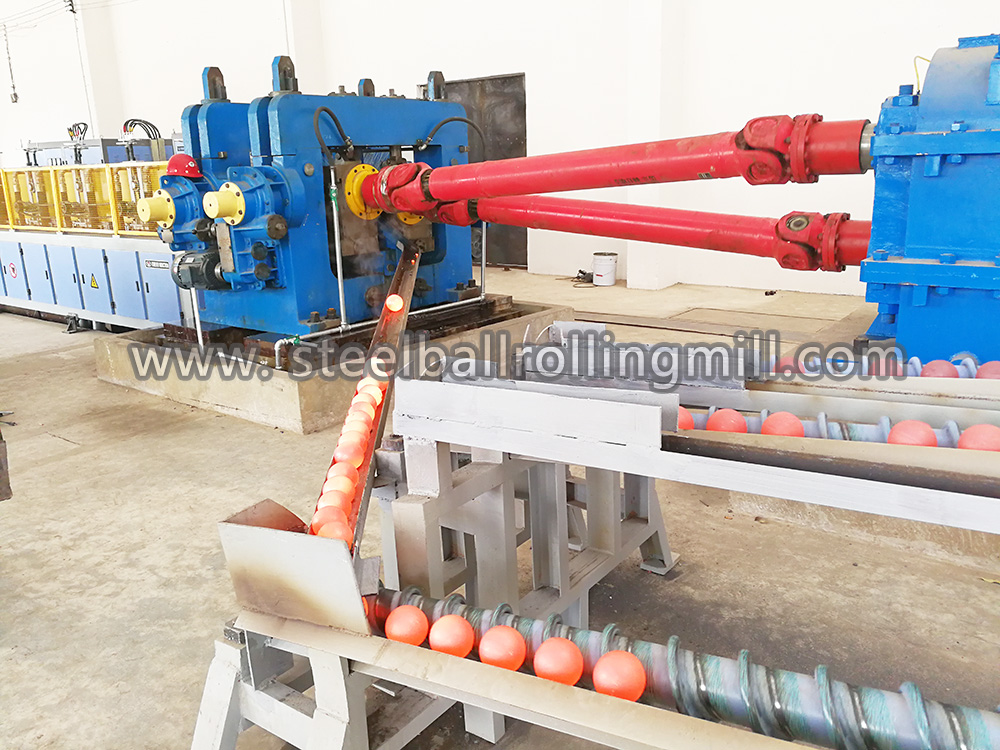 軋輥軸線與軋制線傾斜一定角度。軋輥上有螺旋孔型。軋件螺旋前進。在螺旋孔型作用下,圓鋼逐漸變成球形,球形間連接頸部分越來越細,最后斷開而獲得鋼球。軋后的鋼球經過進一步熱處理后即得到成品鋼球。